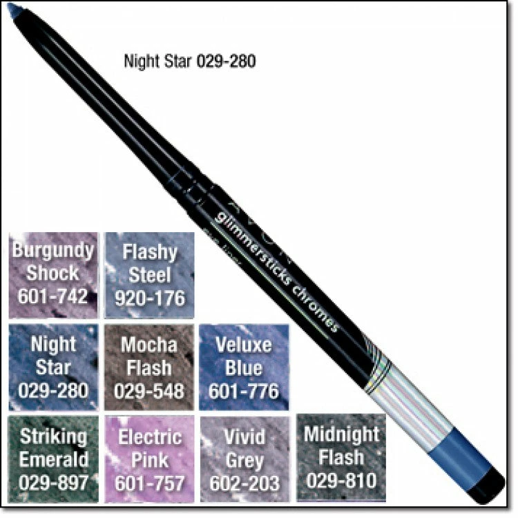 Avon Glimmersticks Chrome Eye Liner is a pearlised chrome finish precision eyeliner. Smudge-proof and waterproof. Anti fade color that wears up to 12 hours.
