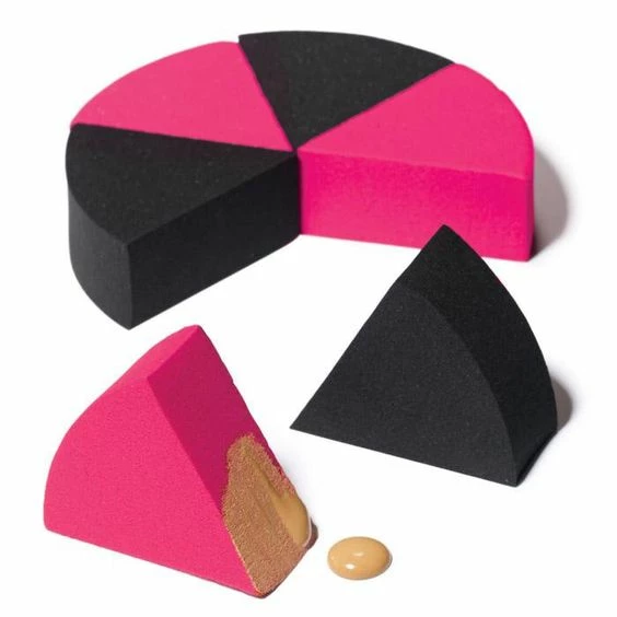 Set of six triangle-shaped sponges in a handy container to keep clean and organized at home or for on the go. 100% man made materials.